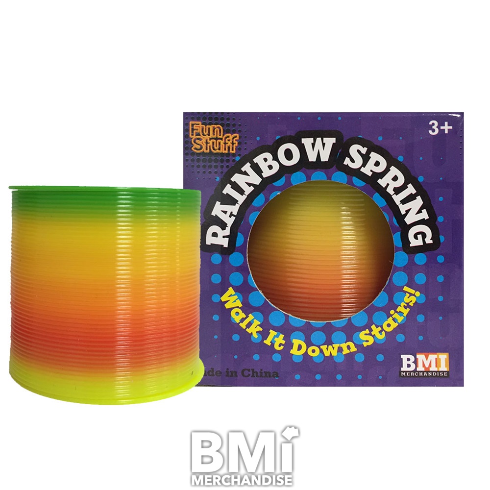 60MM (2 3/8") SPRING THAT IS RAINBOW COLORED. WATCH IT BOUNCE UP AND DOWN AND WALK DOWN SLOPES. COMES IN A PRINTED WINDOW BOX.