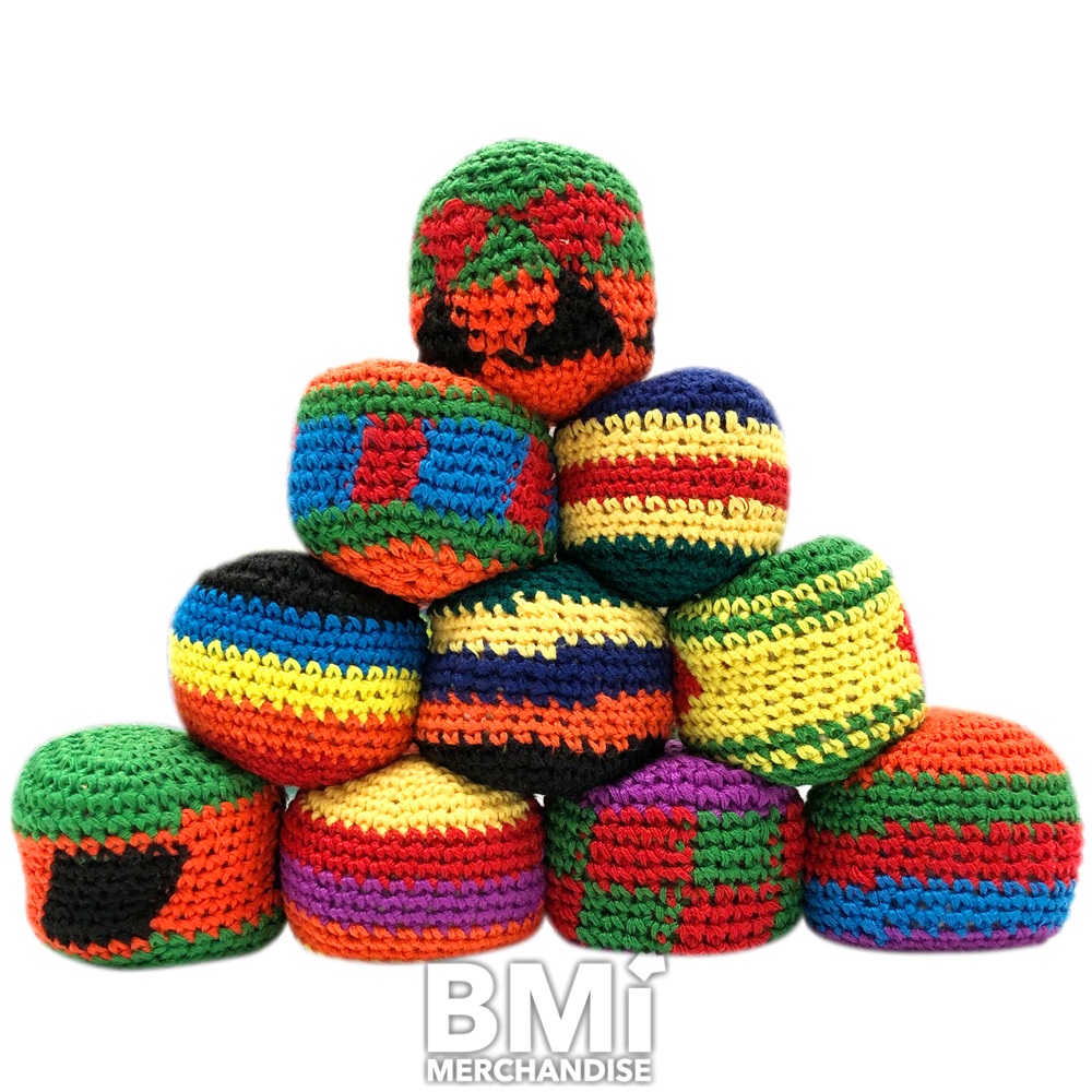 ASSORTED CROCHET KICK SACKS. COLORS WILL VARY. A MUST HAVE ITEM FOR BASKETS & BINS. MINIMUM ORDER IS A 24 PC UNIT.